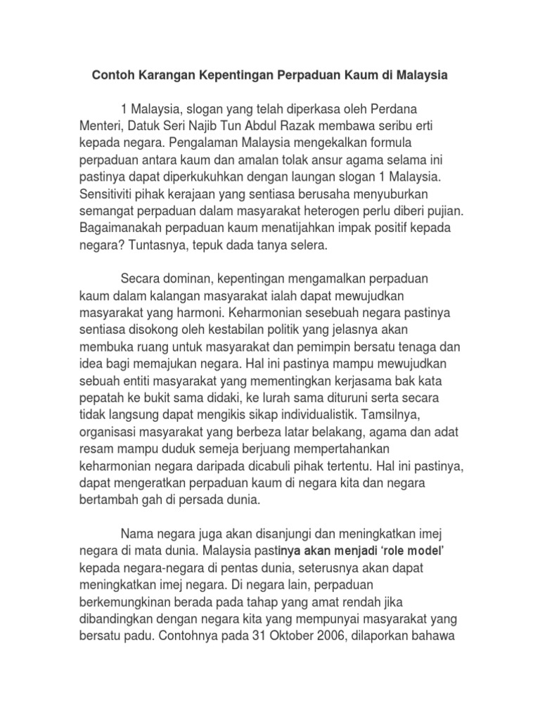 Contoh Karangan Kepentingan Perpaduan Kaum Di Malaysia Pdf